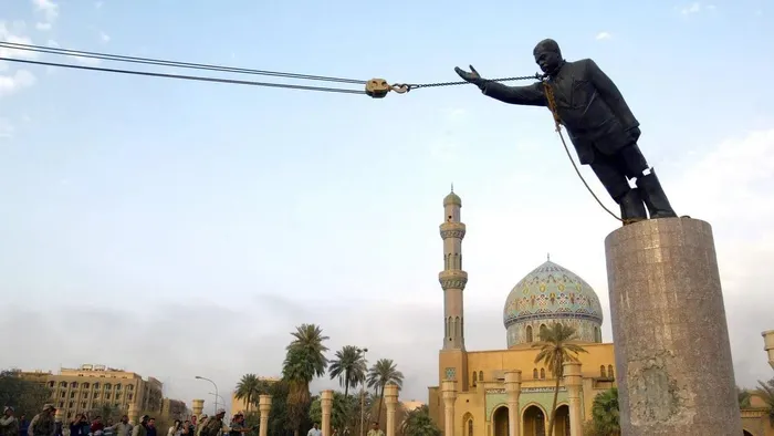 Statues can come down as quickly as they go up. This one of Iraq's Saddam Hussein was toppled in Baghdad after his government collapsed.