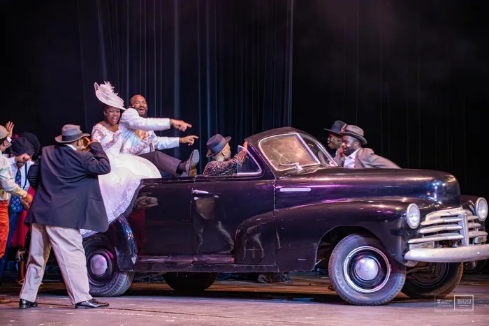 A vibrant moment in 'The Fatherland – The Musical' as the ensemble bursts into a wedding scene, capturing the spirit, resilience and cultural rhythm that define this powerful South African stage production at the South African State Theatre.