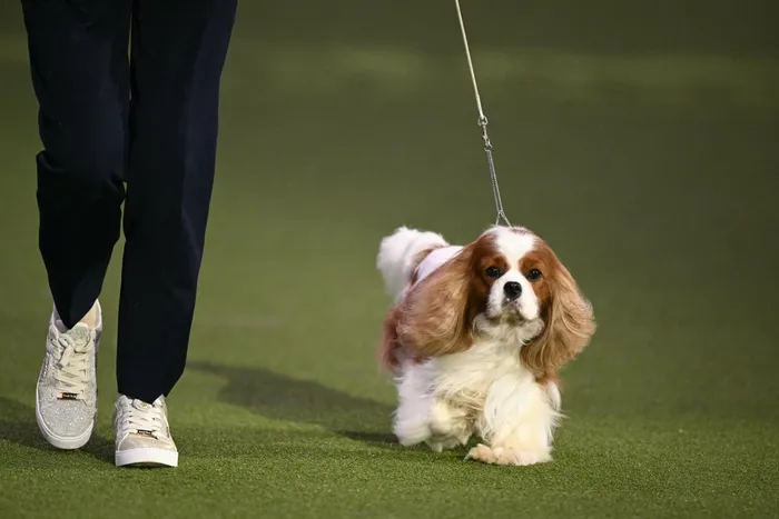 Toy Group winner, Cavalier King Charles Spaniel, "Dublin" is shown during the best in show competition on the final day of the Crufts dog show at the National Exhibition Centre in Birmingham, central England, this week.