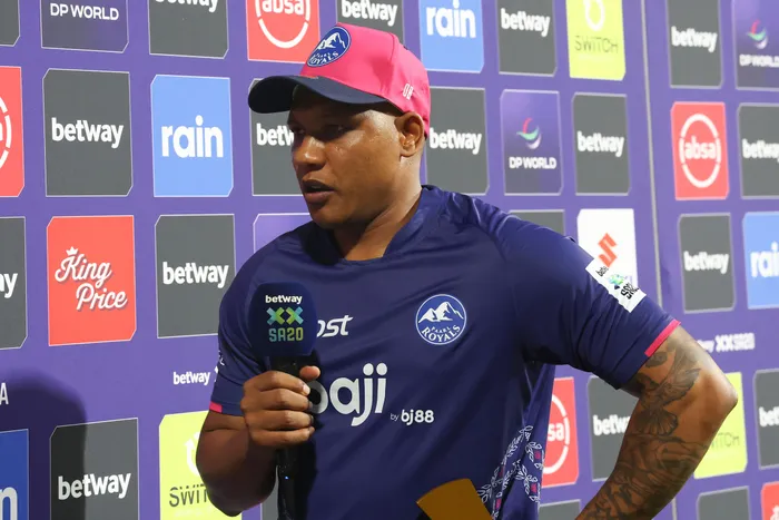 Ottneil Baartman of Paarl Royals is interviewed during the Post Match Presentation after match 25 of the Betway SA20 season 4 between Pretoria Capitals (PC) and Paarl Royals (PR) held at the Supersport Park Stadium in Centurion, South Africa on the 15th January 2026
