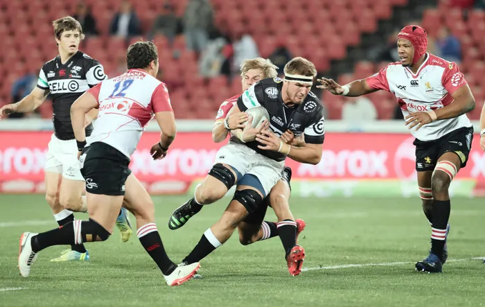 Tyler Paul, former Sharks flank, seen here tackled by Jaco van der Walt of the Lions during the 2017 Currie Cup, will appear for Japan against the Springboks on Saturday. | BackpagePix