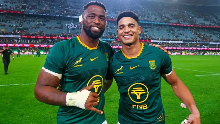 Springbok captain Siya Kolisi with star Sacha Feinberg-Mngomezulu. | SA RUGBY
