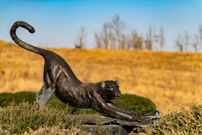 One of the sculptures in the garden titled Leopard in the Bronze by Michael Canadas.