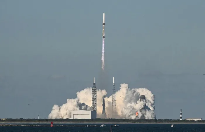 Blue Origin's New Glenn rocket lifts off for its second mission, the NG-2, from Space Launch Complex 36 at the Space Force Station in Cape Canaveral, Florida, on November 13, 2025. New Glenn, the towering rocket built by Jeff Bezos's space company Blue Origin, is set to take off on its second mission as competition intensifies with Elon Musk's SpaceX.