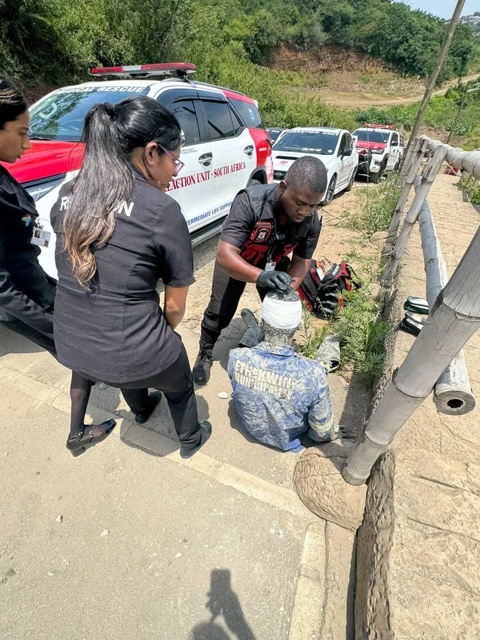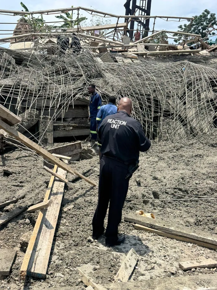 “The four-storey temple at River Range Ranch collapsed with several entrapments under concrete. Survivors are communicating via voice notes from under the building. We are currently treating eight patients.