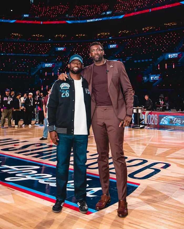 Spingboks captain Siya Kolisi with Festus Ezeli at the 2026 NBA All-Star Game in Los Angeles.