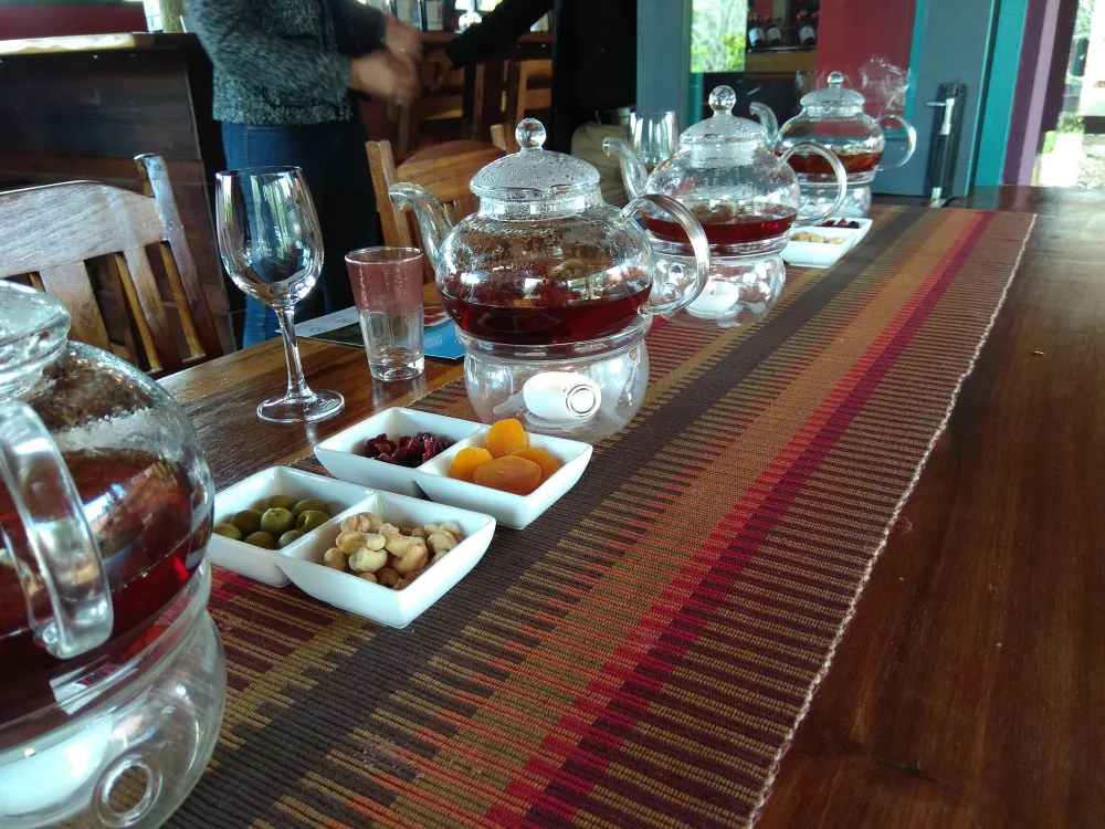 Both Piekernerskloof wine and Carmien Rooibos Tea are grown in the surrounding valleys, making for a perfect pairing. The tea is used as a palate cleanser between meals.