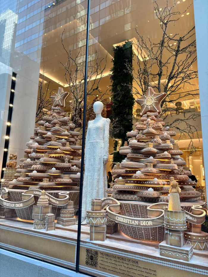 The Dior store's display looked as though it had been lifted straight from a storybook, complete with intricate gingerbread-inspired structures.