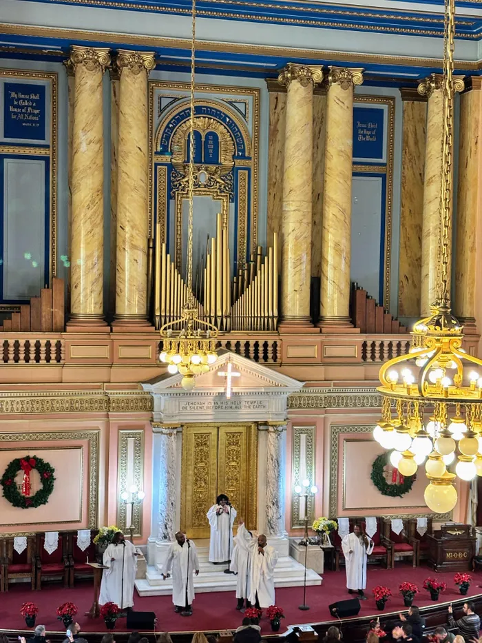 If you’ve ever watched a Tyler Perry film, you’ll notice how vibrant and emotionally powerful the church scenes are. One I often think about is the moment the song “Father Can You Hear Me” is performed during a church service in Diary of a Mad Black Woman. It remains one of the most poignant moments in the film. I was reminded of it and overwhelmed with emotion on December 24 while sitting in Mt Olivet Baptist Church on Malcolm X Boulevard in Harlem.