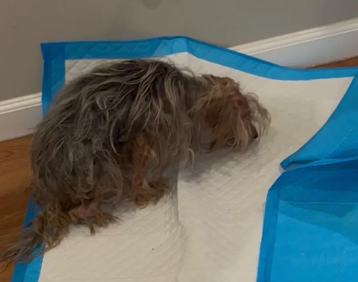 Apple, a senior Yorkshire Terrier, was rescued at the bottom of a trash chute in Washington on Saturday. She was severely matted and in bad condition, until volunteers with Miri's Haven Senior Dog Rescue took her in.