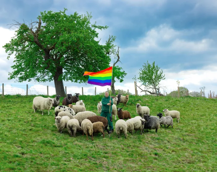 Gay. Sheep. Farmer. Michael Stücke stands with his flock of sheep