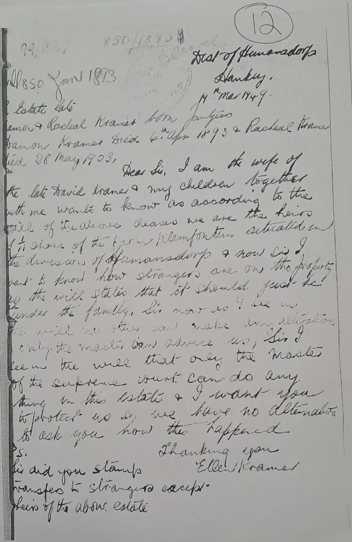A letter by Ellen Kramar, describing the family's struggle for their land.