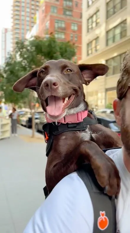 Bryan Reisberg spends one day a week taking shelter dogs out of their kennels. He puts them in a backpack that says "adopt me" and shows them around New York.