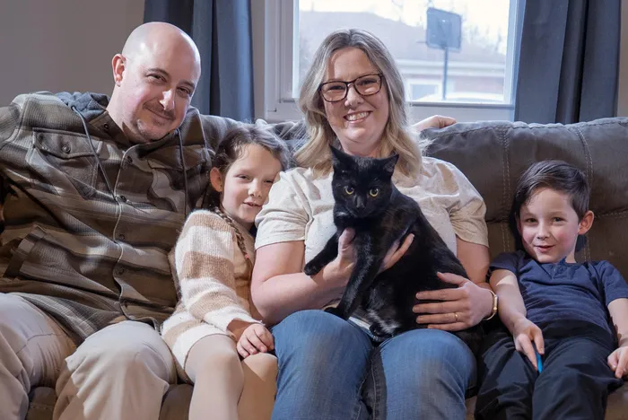 Amé-Leigh Price and her family with their cat, Lucy.