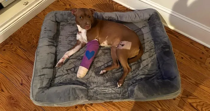 Millie recovering after she was hit by a car.
