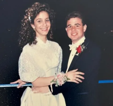 Elena Hershey and Shawn Moyer at Moyer’s high school prom in 1988. Moyer asked Hershey to the prom after his original date bailed, and 37 years later, Hershey donated a kidney to help save his life.