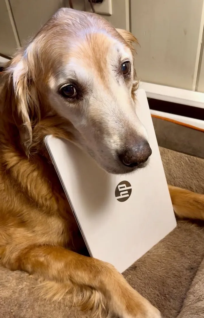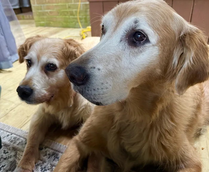Before Duke came into their lives, Hoyt and her husband had recently lost their golden retriever Charlie, who had been with them for 12 years. They have another senior golden named Gina, 12.