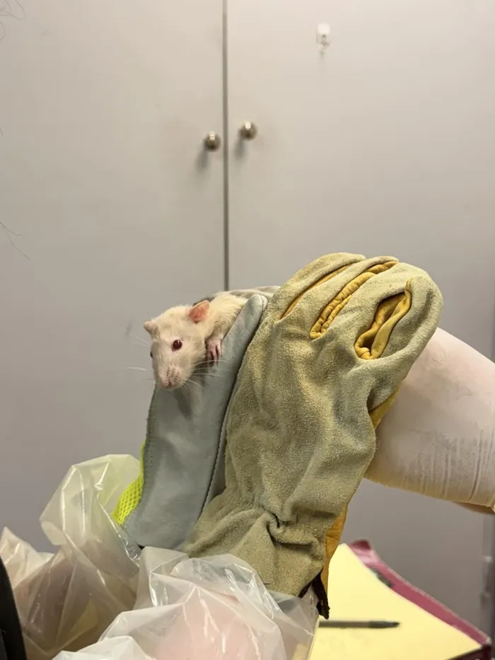 A wounded rat gets treated at Jefferson Animal Hospital.