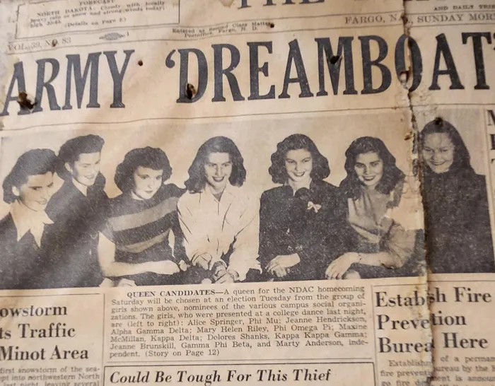 The article featured seven young women who were nominees for North Dakota Agricultural College’s homecoming queen. Among them was Chapman’s mother, Marty Anderson, who had briefly lived in Fargo while attending college and was named homecoming queen that year. (The school is now called North Dakota State University.)