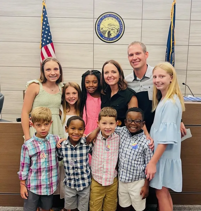 The Beethe family on True's adoption day in August 2023.