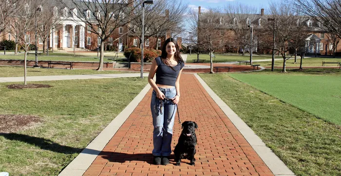 In September 2022 - soon after Gray started attending the University of Maryland - she saw a Labrador retriever near the center of campus and asked if she could pet the dog. A student told Gray she couldn’t because the puppy - who wore a yellow vest that labeled her as an assistance dog in training - was working.