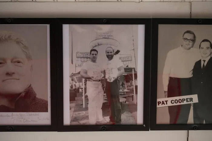 A photo on display at the restaurant of owner Olivieri and his father is flanked by images of Bill Clinton and actor Pat Cooper.