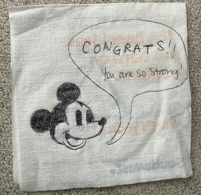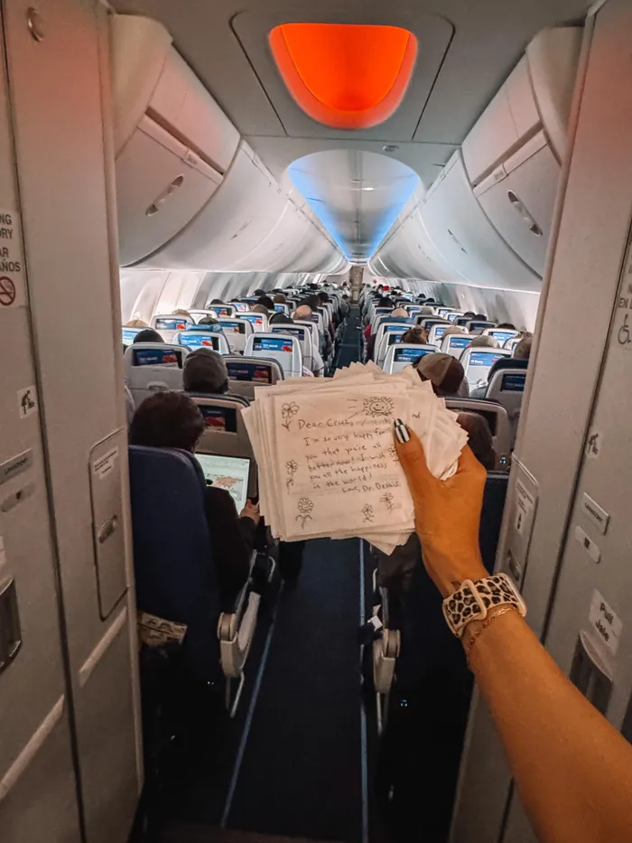 “CRUZ! Buddy, you are such a hero! Sounds like you have worked so hard to get to this point and I am so very proud of you for never giving up!” a passenger named Ryan wrote on a napkin. “Congratulations on winning a truly difficult battle! You are MY HERO!!!”