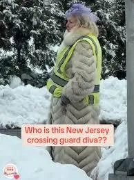 He took a video and posted it, writing: “Who is this New Jersey crossing guard diva??” The caption read: “Fur ✅ Fascinator ✅ High viz ✅ Powerful ✅ Confident ✅ Fabulous ✅ We must know her story.”
